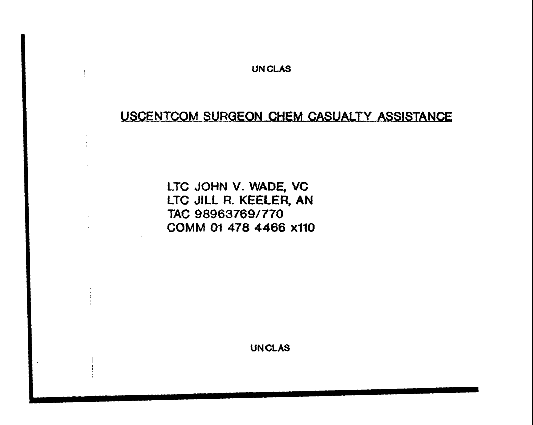 Document 11 f:/Week-36/BX003204/CHEMICAL CASUALTY CARE ANNUAL REPORT OPERATION DESERT SHIELD STORM/clini consultnt for chem casualty rept to surgeo:01029715474763
