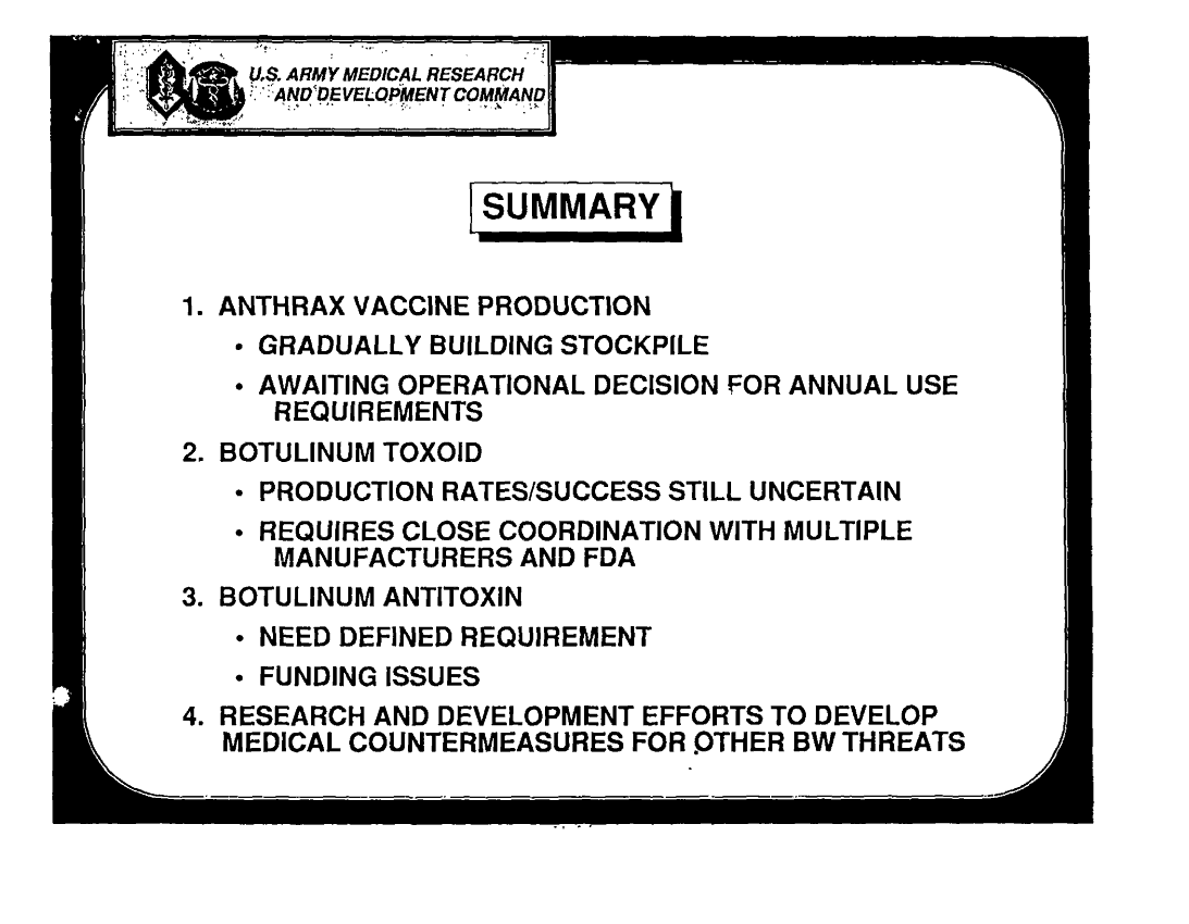 Folder Title = UPDATE ON MED BIO DEFENSE VACCINE PROGRAM BW VACCINE PRODUCTION UPDATE
