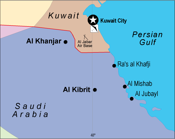 Figure 2. Map of Saudi Arabia showing area from Al Jubayl to Al Kanjar