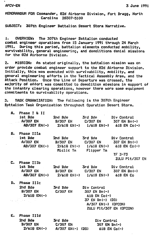 307th EN Bn Operations Summary