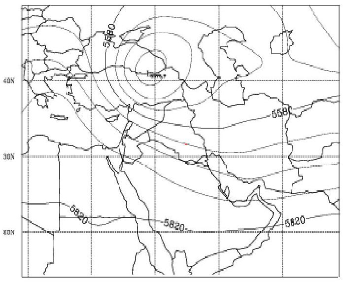 Figure A-25. NOGAPS upper level (500mb) contours for 0000 UTC on 03/08/91