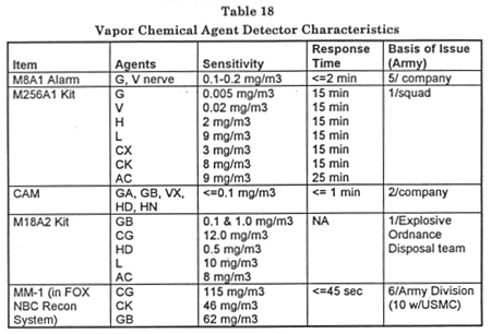 The following is Table 18 of the Report of the Defense Science Board Task Force on Persian Gulf War Health Effects, June 1994.