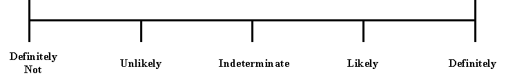 By following our methodology and accumulating anecdotal, documentary, and physical evidence, and by interviewing eyewitnesses and key personnel, and analyzing the results, the investigator can assess the validity of the presence of chemical warfare agents on the battlefield. Because information from various sources may be contradictory, we have developed an assessment scale (Figure 1) ranging from "Definitely" to "Definitely Not" with intermediate assessments of "Likely," "Unlikely," and "Indeterminate." This assessment is tentative, based on facts available as of the date of the report publication; each case is reassessed over time based on new information and feedback.