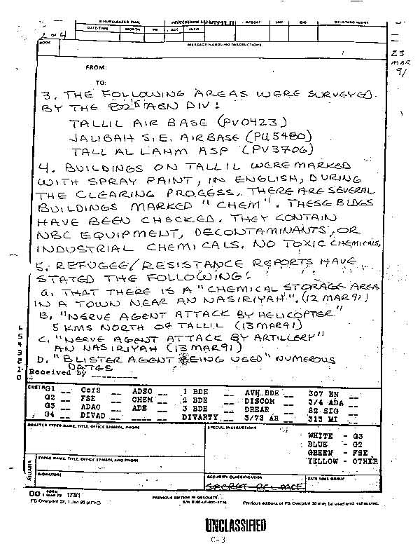 3. ARCENT Spot Report--Tall Al Lahm Chemical Survey (28 Mar 91)