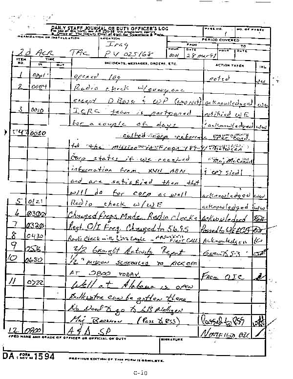 4. 2nd ACR/VII Corps Log Entries--Chemical Surveys (28 Mar 91)