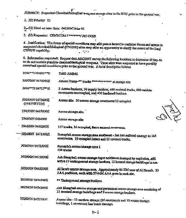 Suspected Chemical/Biological Weapons Storage Sites in the
