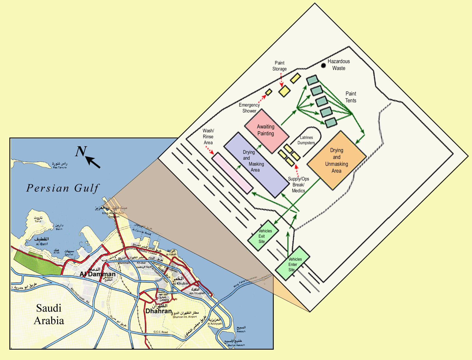Figure 10. Location and major features of the VII Corps Ad Dammam redeployment site