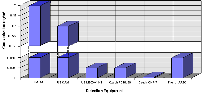 Figure 2. Chemical Detector Sensitivity Threholds to G-Series Nerve Agents (Air)