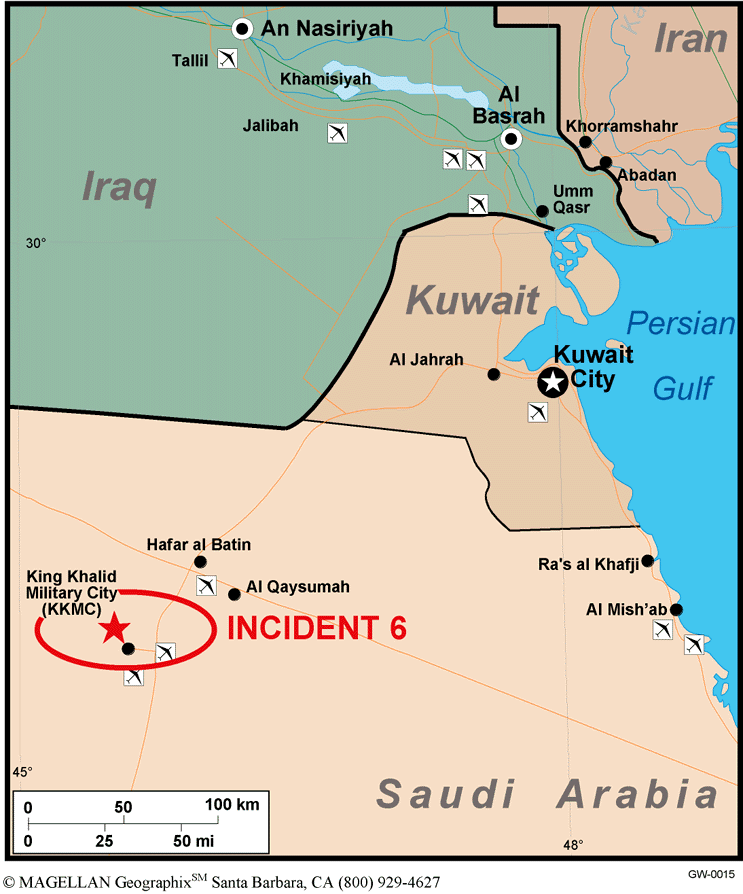 Figure 7. Kuwaiti Theater of Operations with Incident 6, January 24, 1991