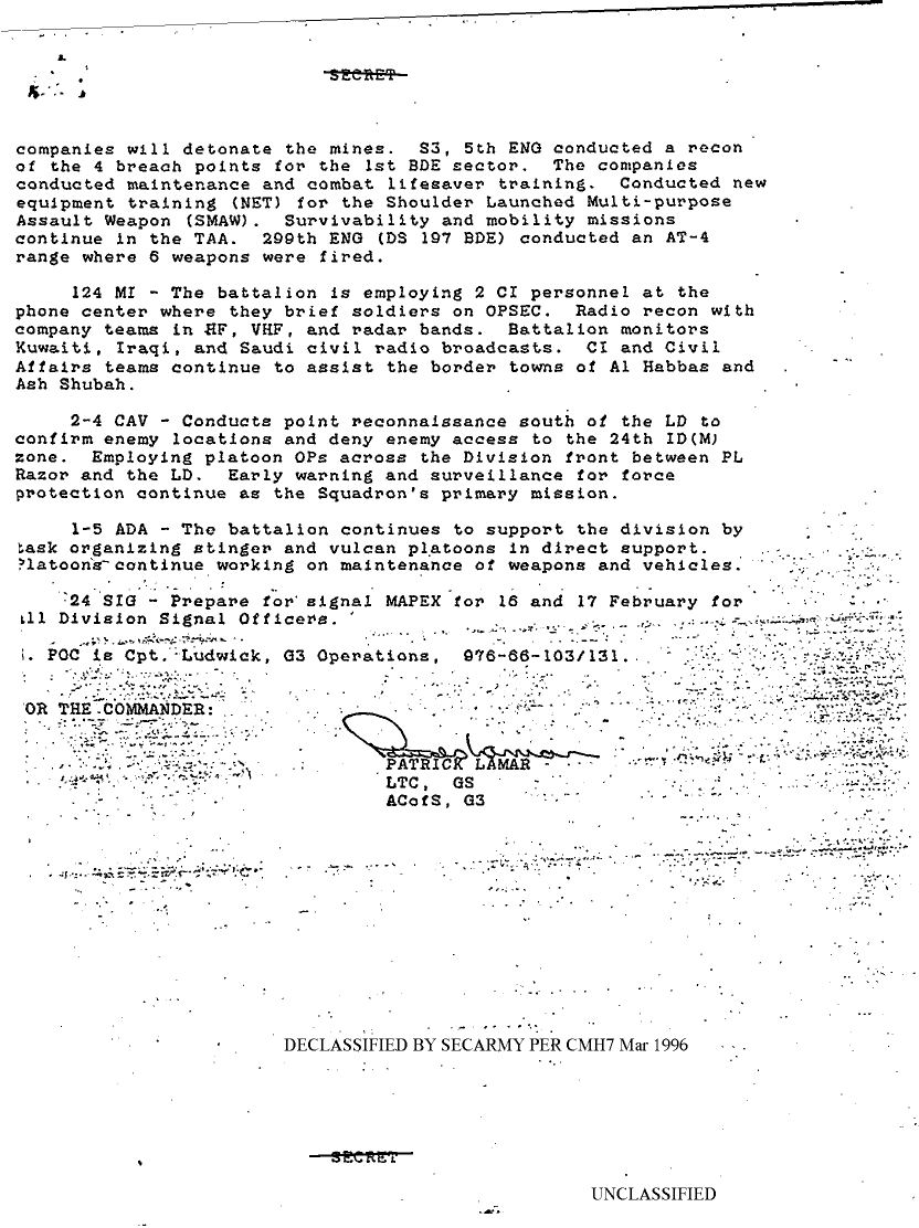 Document 3 f:/Week-08/BX000015/DUTY LOG 24TH IN DIV SITREPS G3 FEB 91/commander's daily sitrep 141800 feb 91 - 151800 fe:04109619191911