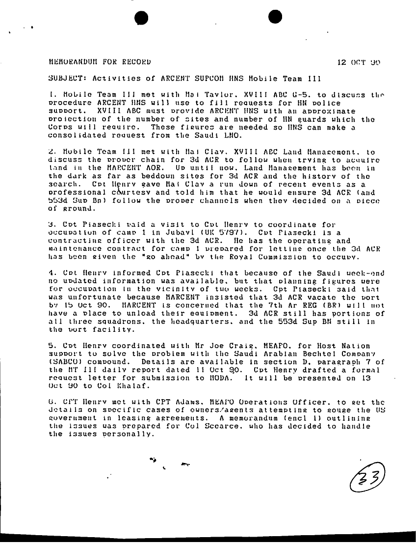 Subject = DAILY STAFF JOURNAL OR DUTY OFFICERS LOG 13 OCT 90