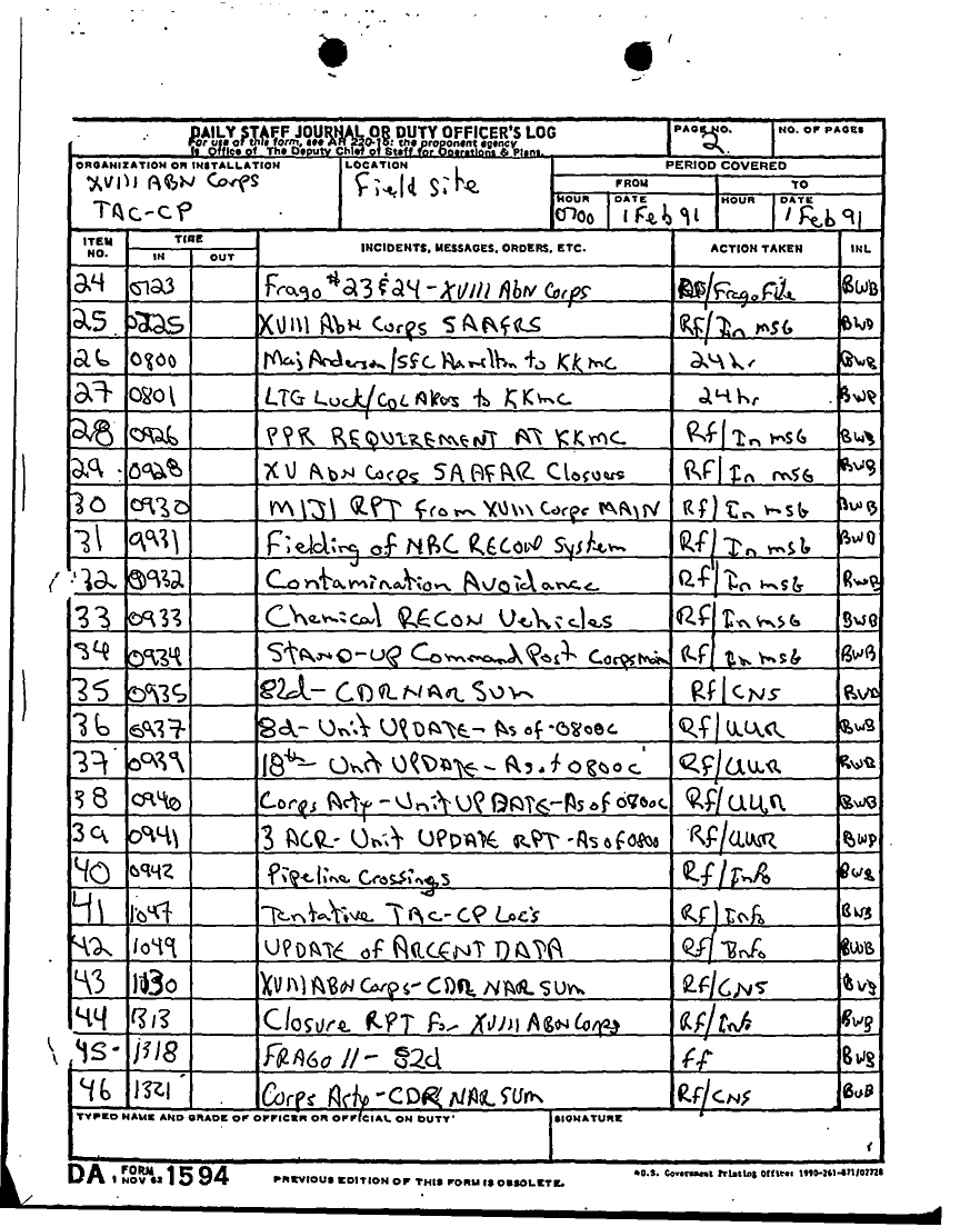 Document 17 f:/Week-12/BX000024/DUTY LOG G3 TAC CP 31 JAN 91/daily staff journal or duty officers log:041796160120115