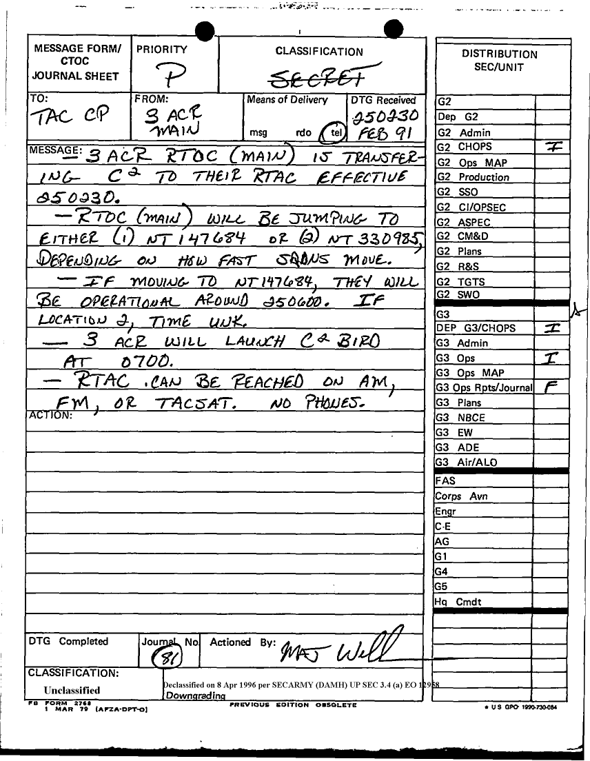 Document 132 f:/Week-12/BX000024/DUTY LOG G3 TAC CP 24 FEB 91/daily staff journal or duty officers log:041796160120117