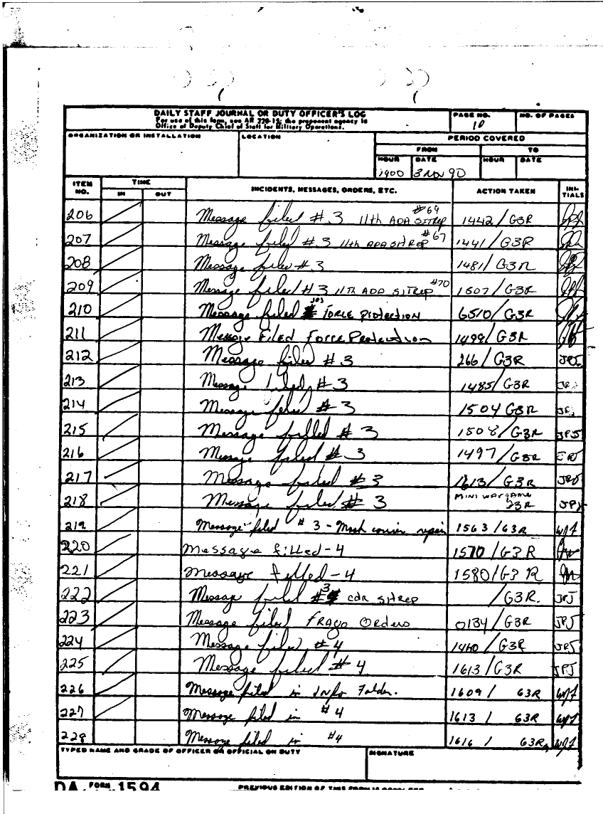 Subject = DAILY STAFF JOURNAL OR DUTY OFFICERS LOG 30 SEPT 90