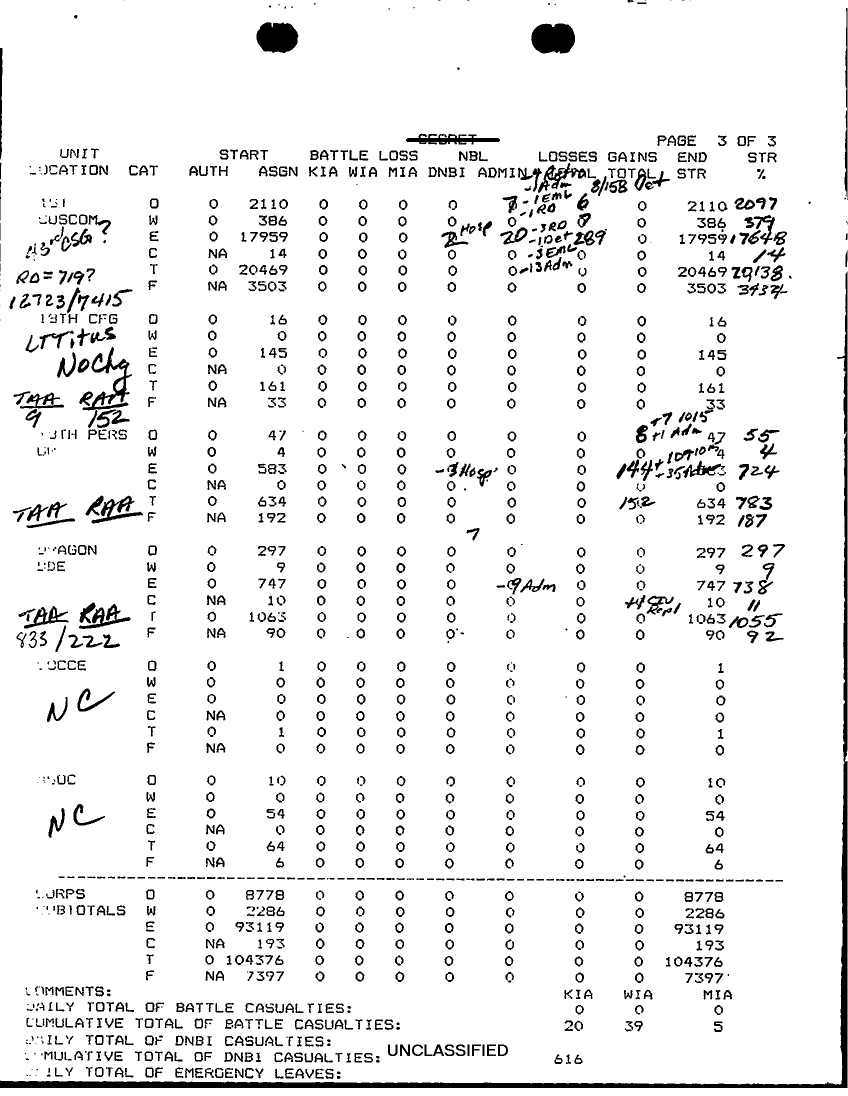 Folder Title = PERSONNEL STATUS REPORTS 11-20 MARCH 91