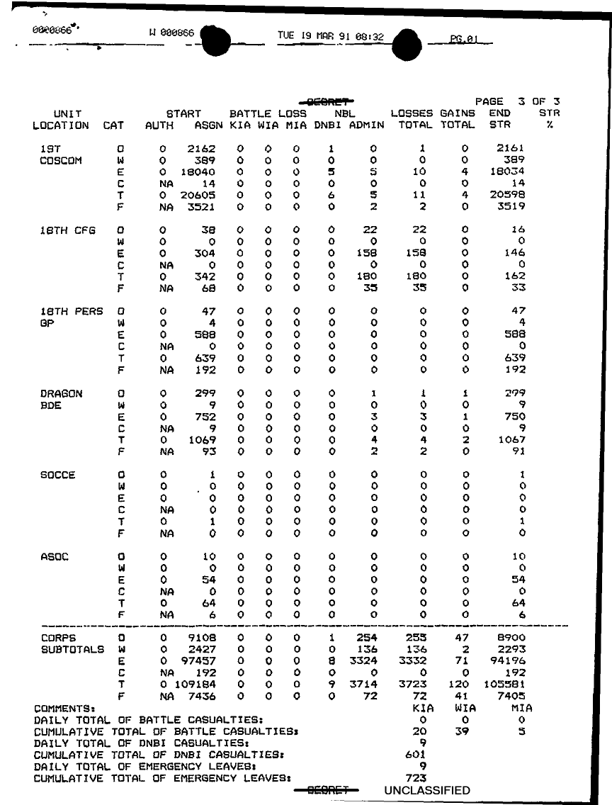 Folder Title = PERSONNEL STATUS REPORTS 11-20 MARCH 91