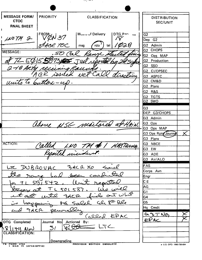 Document 81 f:/Week-12/BX000030/DUTY LOG MAIN CP G3 18 NOV 90/daily staff journal or duty officers log:04179616012086