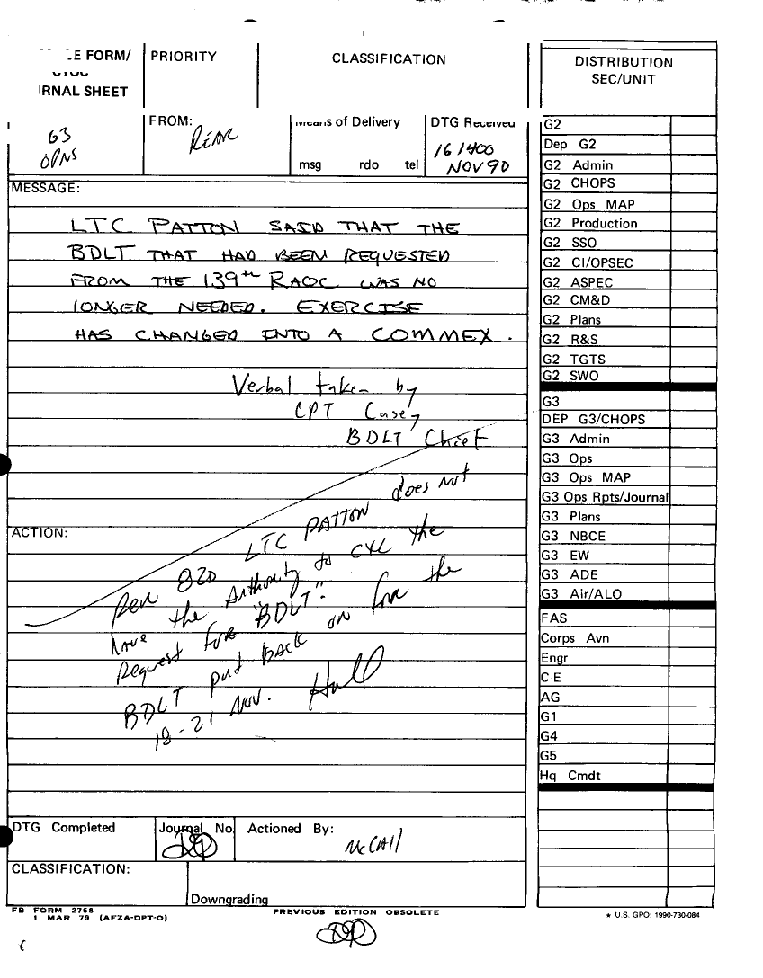 Document 81 f:/Week-12/BX000030/DUTY LOG MAIN CP G3 18 NOV 90/daily staff journal or duty officers log:04179616012086