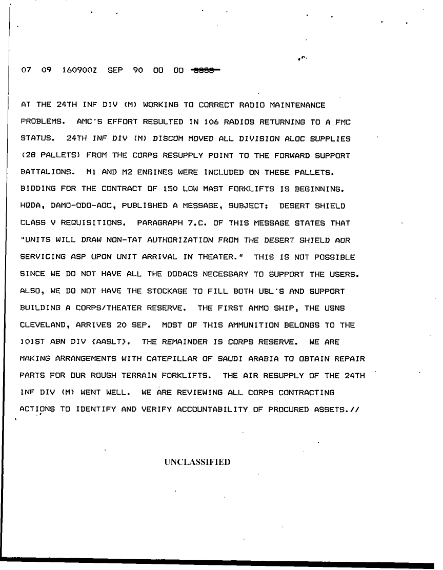 Subject = DAILY STAFF JOURNAL OR DUTY OFFICERS LOG 16 SEP 90