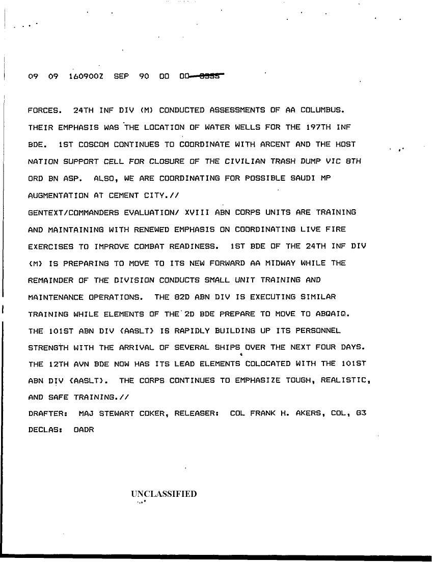 Subject = DAILY STAFF JOURNAL OR DUTY OFFICERS LOG 16 SEP 90