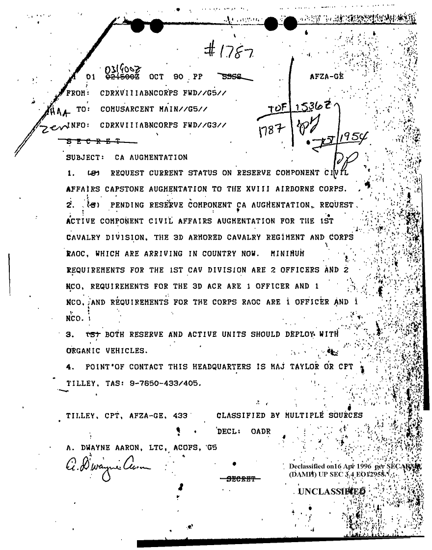 Declassified = 03-MAY-1996