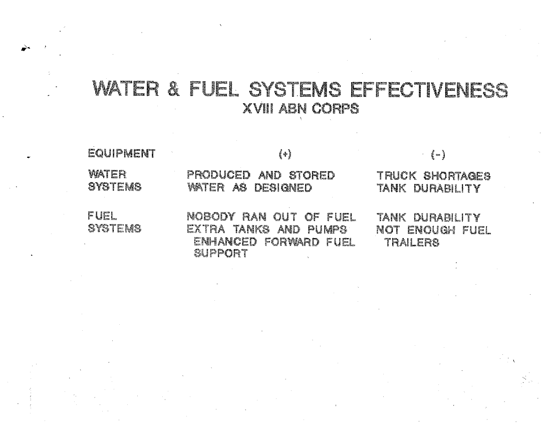 Subject = WATER AND FUEL SYSTEMS SURVEY MATRIX XVIII ABN CORPS