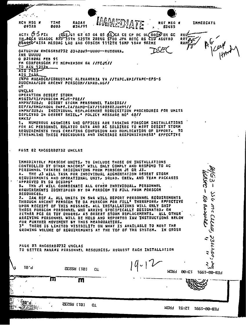 Document 31 f:/Week-16/BX000006/DUTY LOG G1 11-20 FEB 91/daily staff journal or duty officers log:05309618571751
