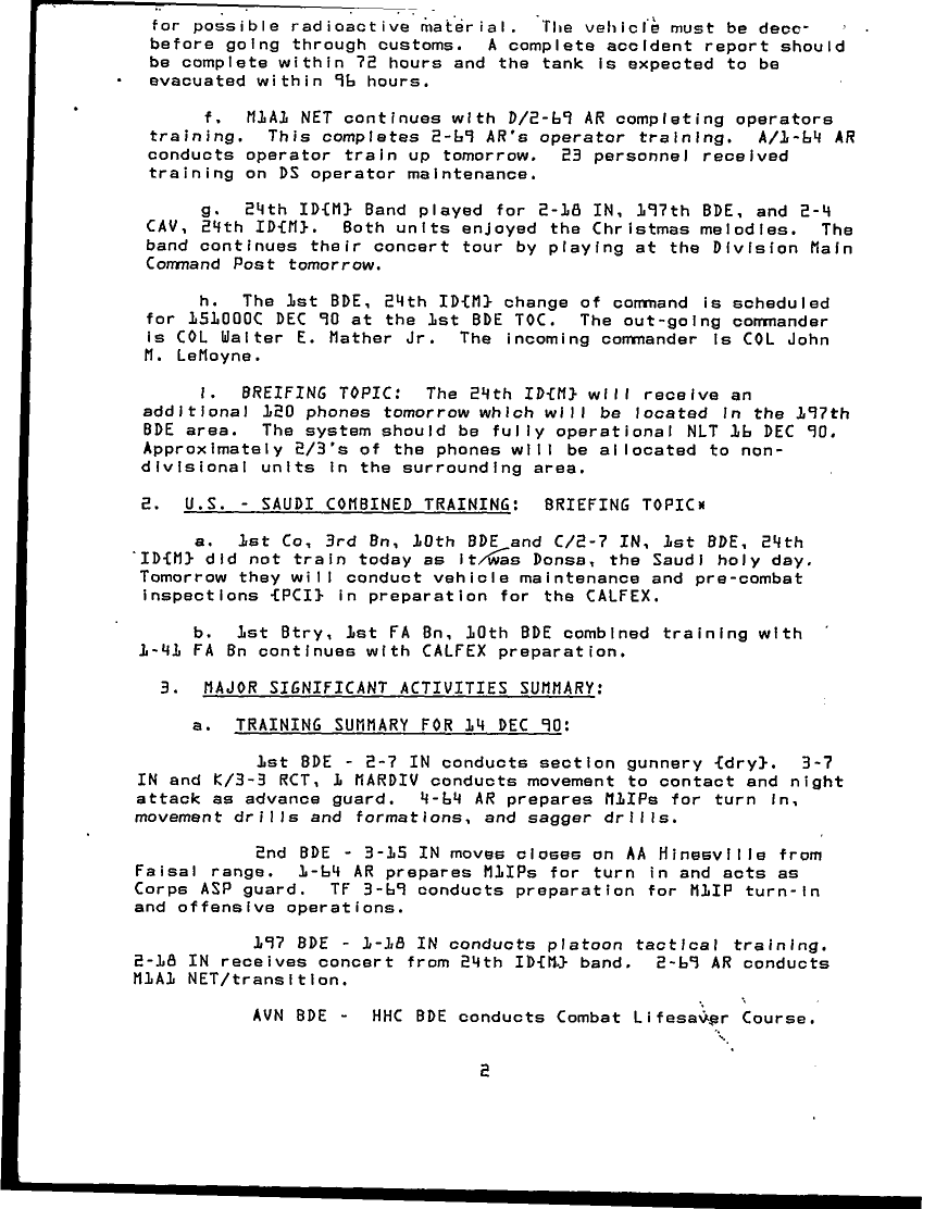 Document 4 f:/Week-18/BX000038/DUTY LOG 24 INF DIV SITREPS G3 DEC 90/commanders daily sitrep 14 dec 90:05309618571740