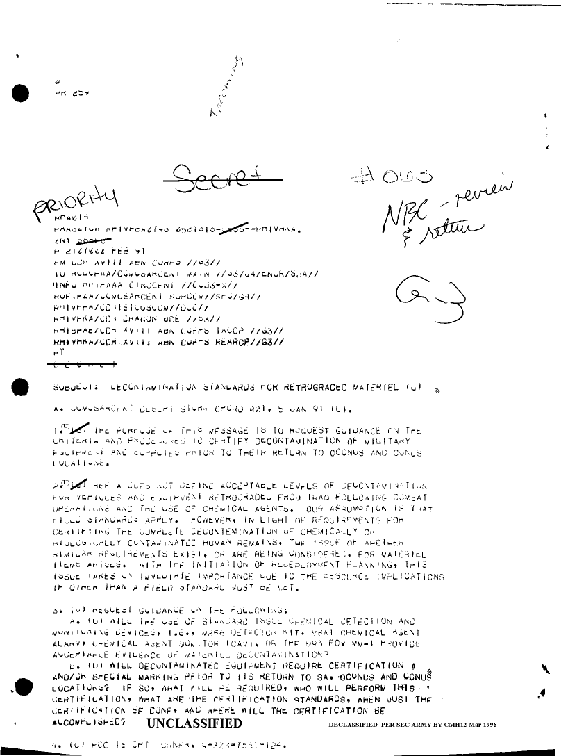 Document 1 f:/Week-09/BX000019/DUTY LOG G3 REAR 23 FEB 91/decontamination standards for retrograded materi:0531961139411