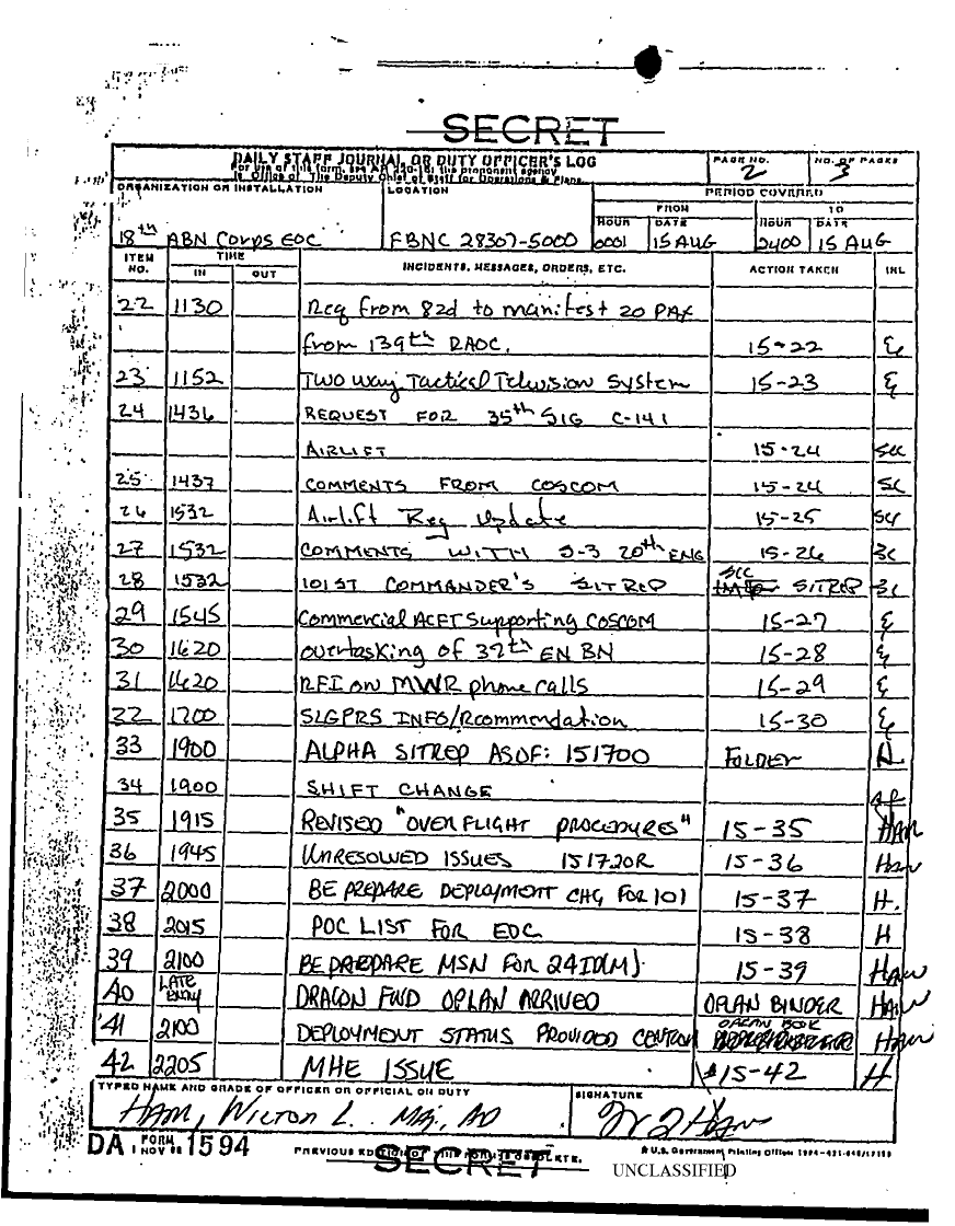 Document 48 f:/Week-10/BX000027/DUTY LOG EOC G3 15 AUG 90/daily staff journal xviii abc 15 aug 90:05319611394120