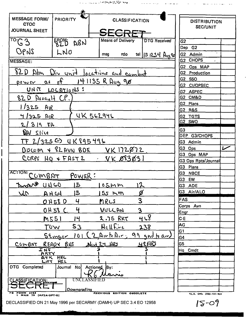 Document 48 f:/Week-10/BX000027/DUTY LOG EOC G3 15 AUG 90/daily staff journal xviii abc 15 aug 90:05319611394120