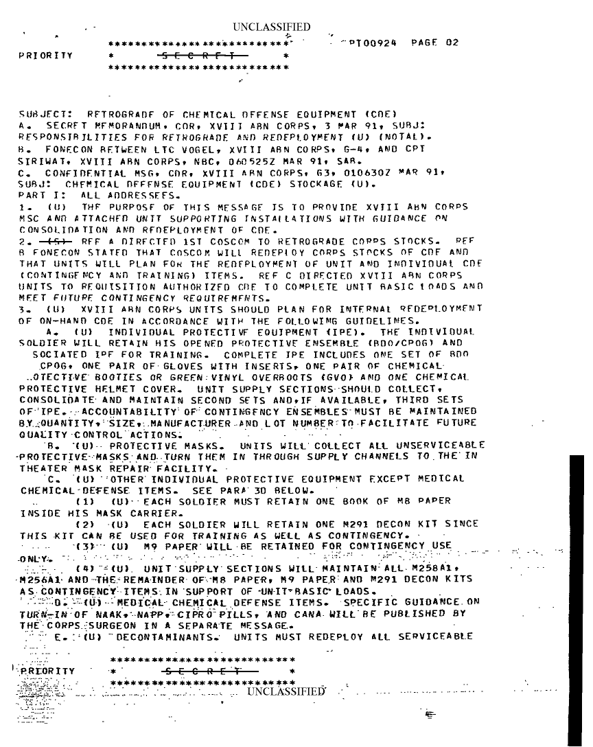 Document 3 f:/Week-22/BX001428/INCOMING MESSAGES DESERT SHIELD CHEMICAL MAR/retrograde of chemical offense equipment:06149615144916