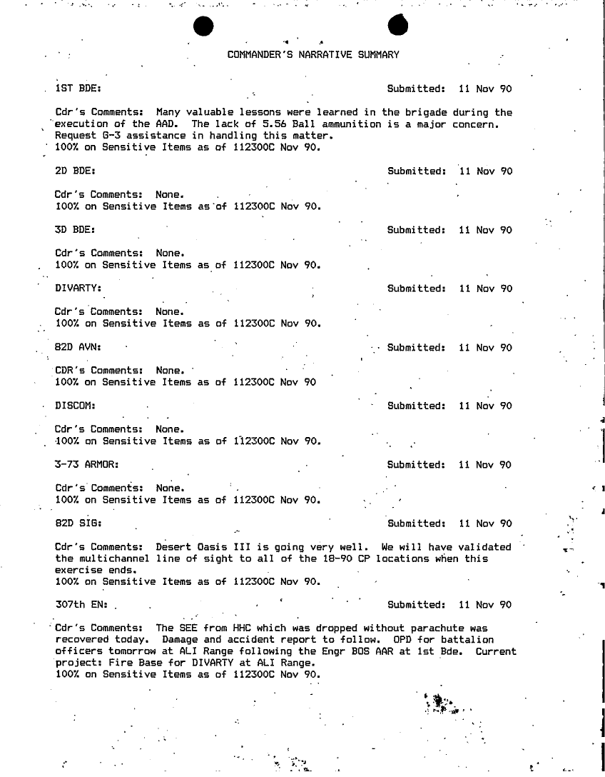 Subject = COMMANDERS NARRATIVE SUMMARIES NOV 90