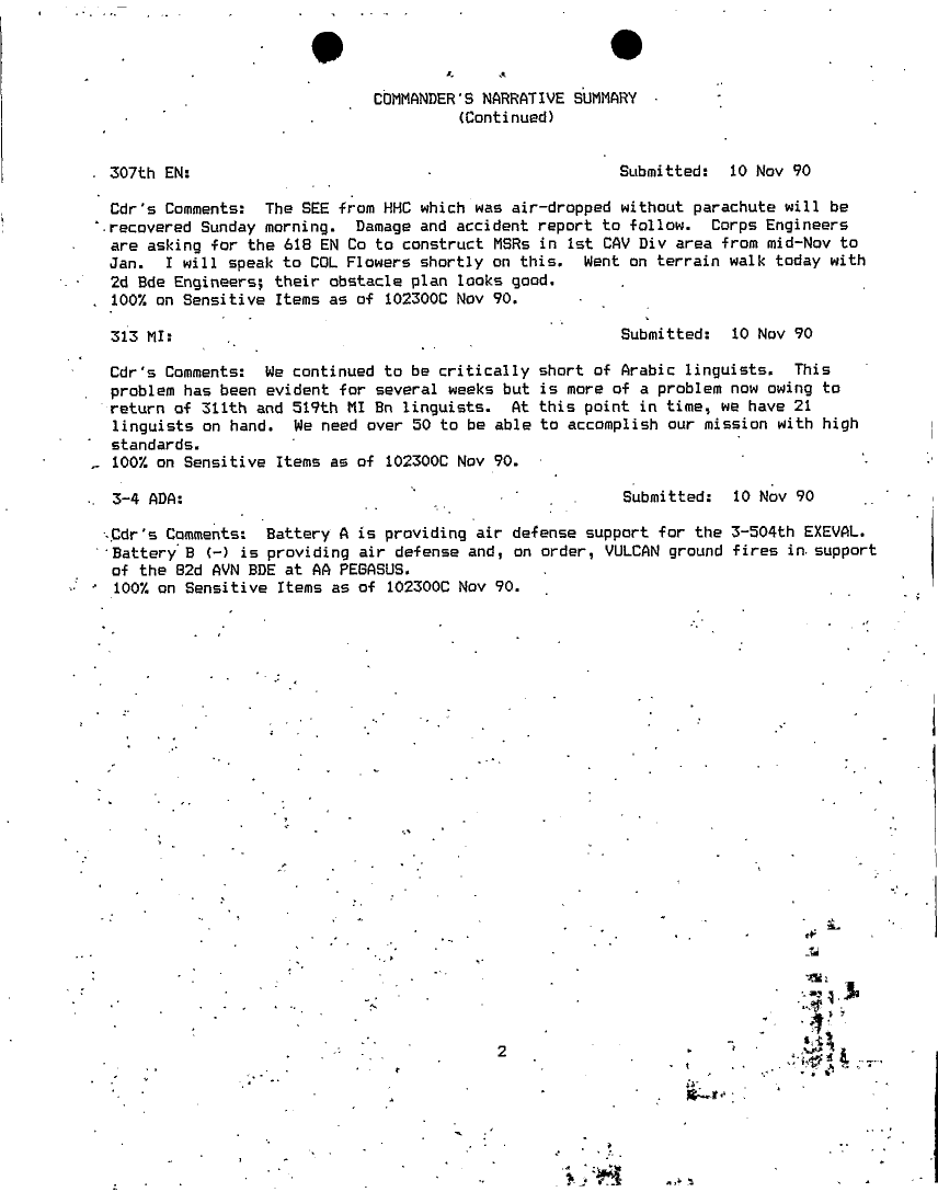 Document 75 f:/Week-18/BX000014/COMMAND REPORTS NOV 92 - 8/commanders narrative summaries nov 90:06079615285229