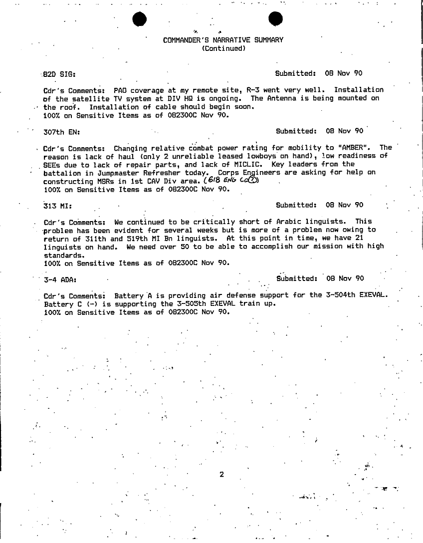 Document 75 f:/Week-18/BX000014/COMMAND REPORTS NOV 92 - 8/commanders narrative summaries nov 90:06079615285229