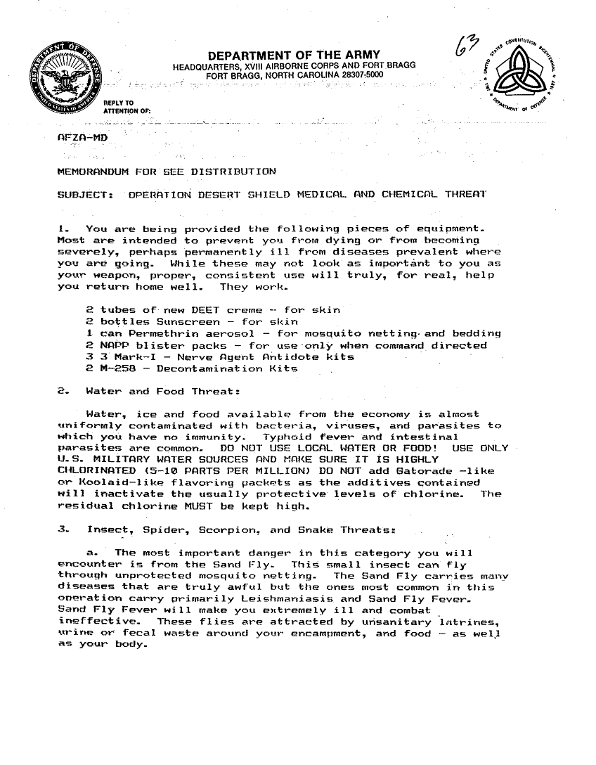 Subject = OPERATION DESERT SHIELD MEDICAL AND CHEMICAL THREAT