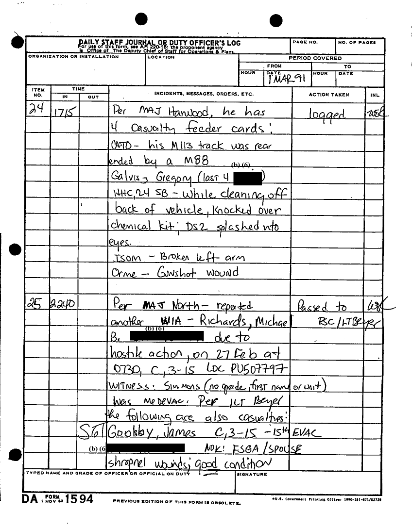 Document 135 f:/Week-22/BX001433/MESSAGE-TELEPHONE TRAFFIC/daily staff journal or duty officers log:06219615521613