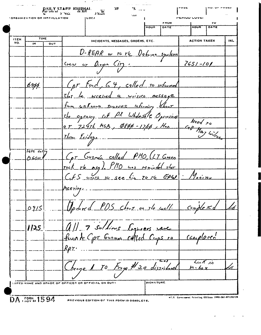 Document 135 f:/Week-22/BX001433/MESSAGE-TELEPHONE TRAFFIC/daily staff journal or duty officers log:06219615521613