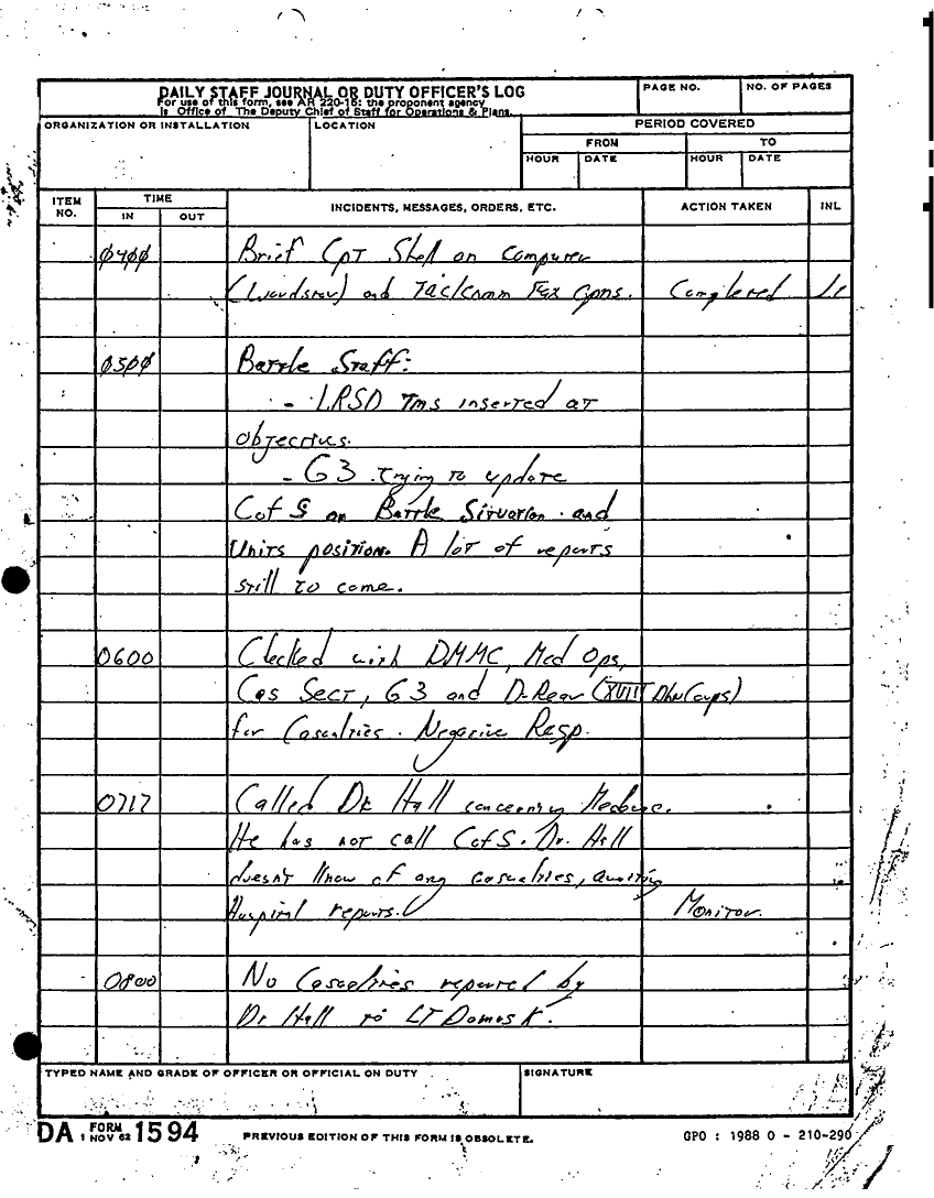 Document 135 f:/Week-22/BX001433/MESSAGE-TELEPHONE TRAFFIC/daily staff journal or duty officers log:06219615521613