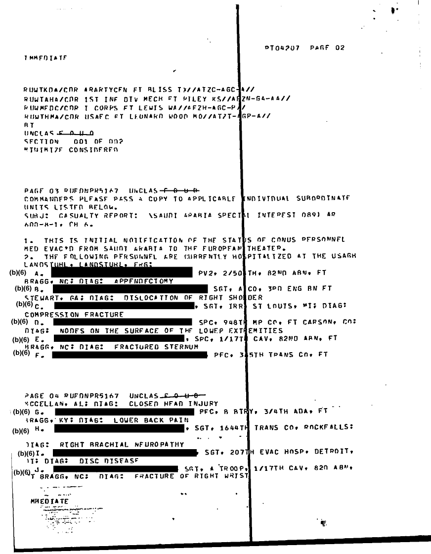 Document 7 f:/Week-20/BX001419/INCOMING DESERT SHIELD MESSAGES MEDDAC FEB 3/casualty report:0621961552104