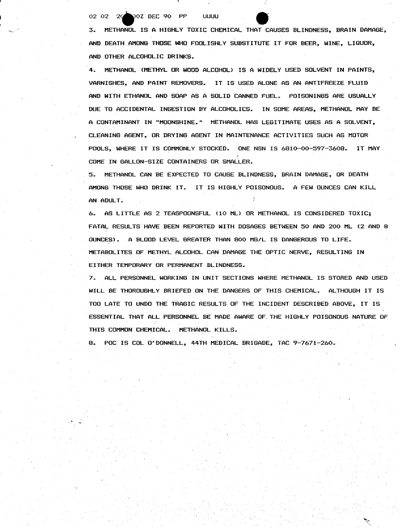 Document 2 f:/Week-22/BX001506/DUTY LOG MSG DEC 90/poisoning incidents alert to all personnel:07019618404643