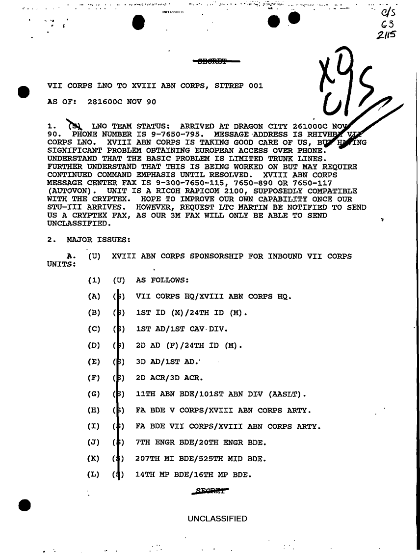 Document 5 f:/Week-12/BX000031/DUTY LOG REAR CP G3 29 NOV 90/sitrep xviii abn corps 28 nov 90:07019618404745