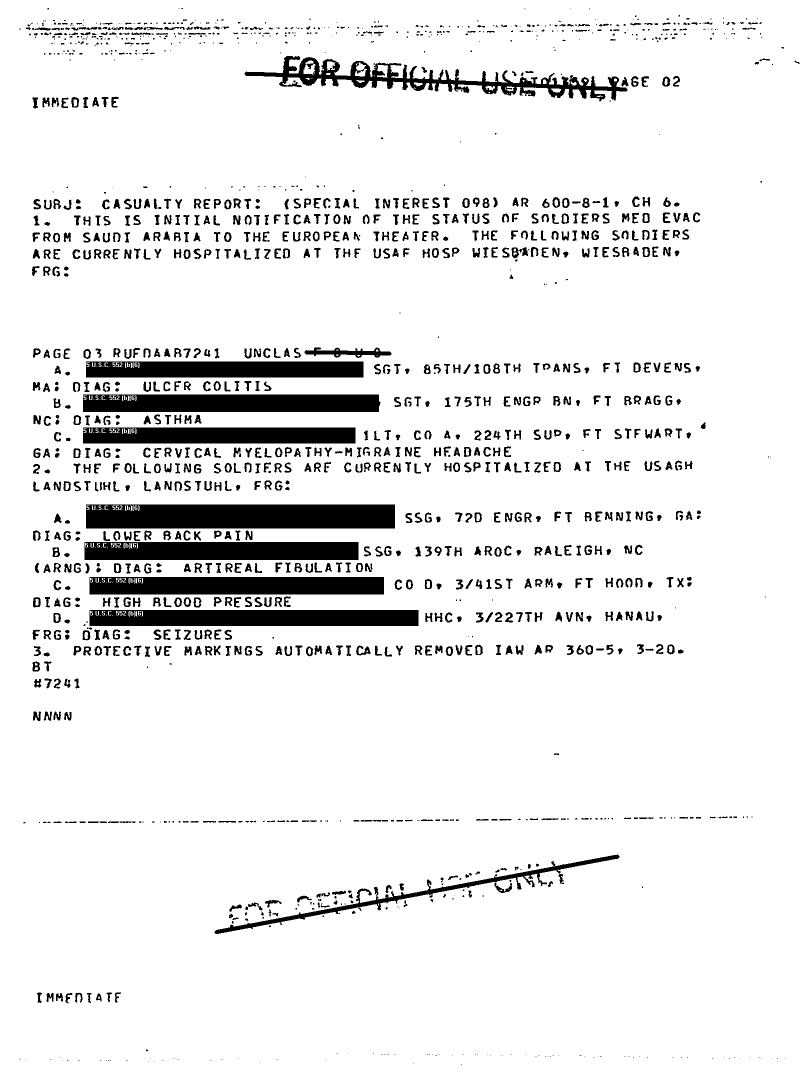 Document 2 f:/Week-22/BX001428/INCOMING MESSAGES DESERT SHIELD MEDDAC NOV/casualty report special interest 098:07019618410269