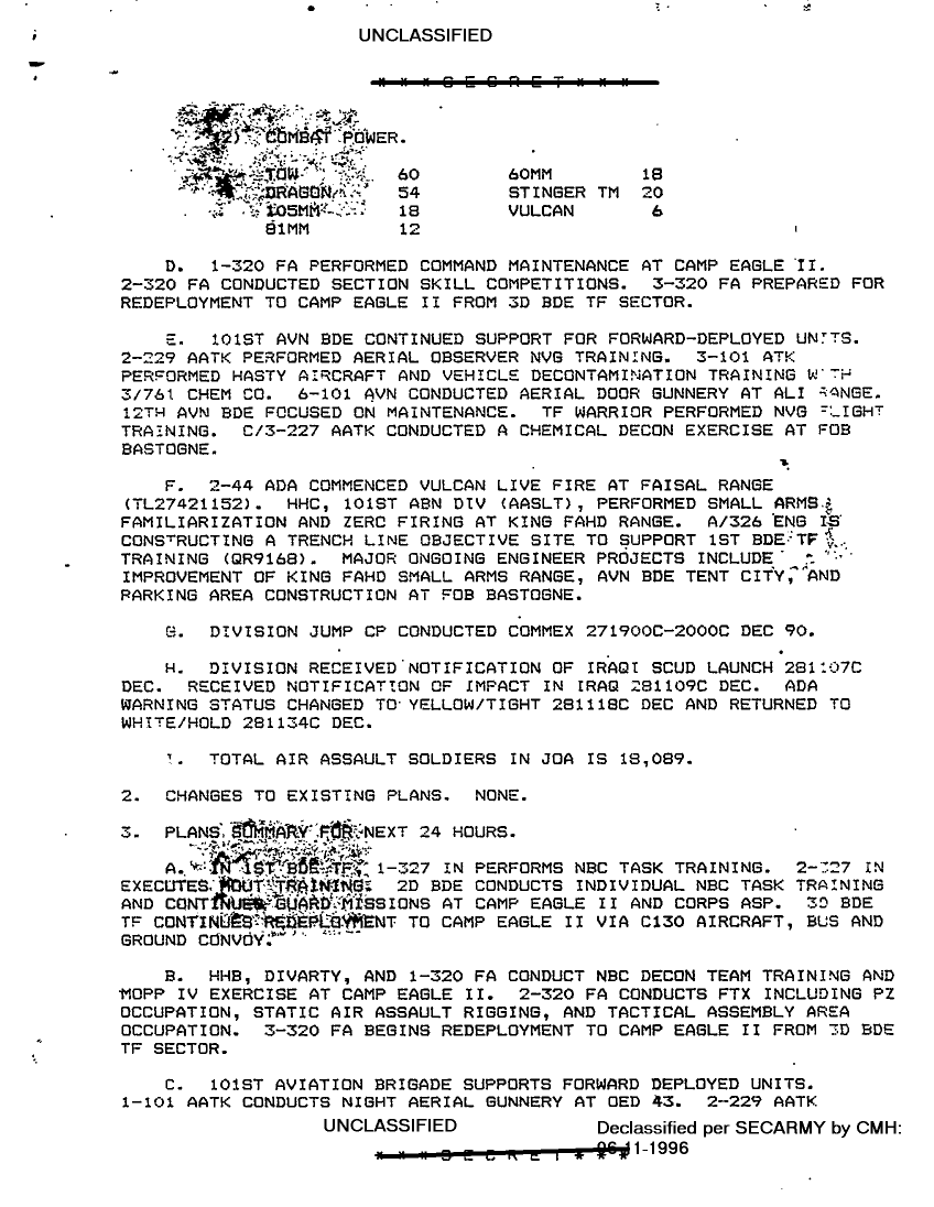 Document 4 f:/Week-18/BX000038/DUTY LOG 101 ABN SITREPS G3 DEC 90/commanders narrative summary 28 dec 90:0705961342129