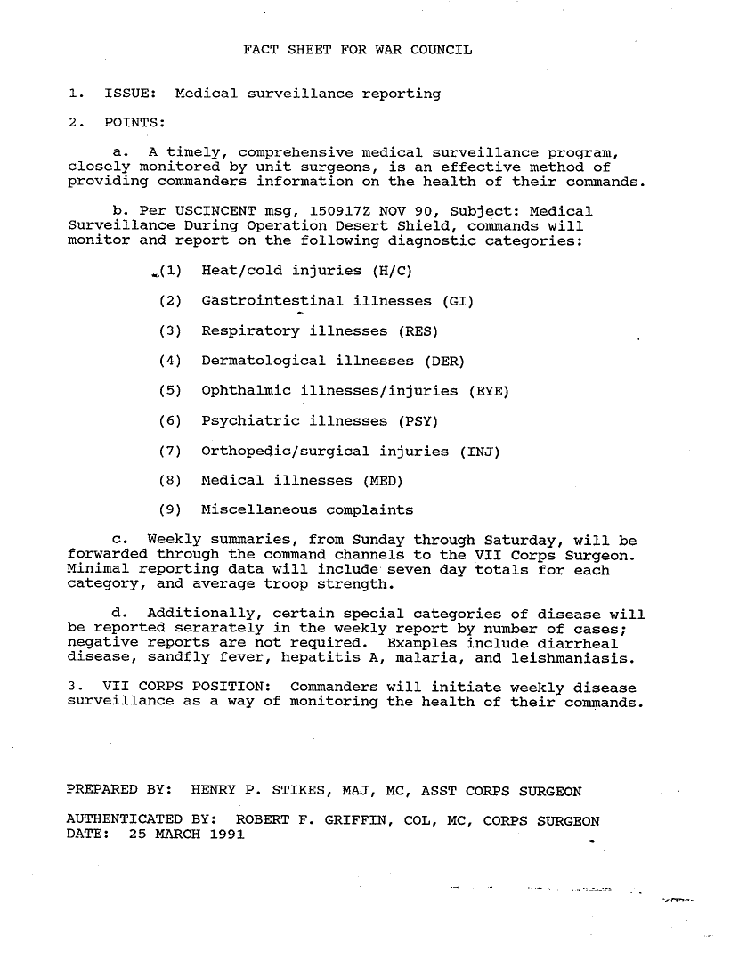 Document 1 f:/Week-23/BX000205/PAMPHLET VU GRAPHS SLIDES OPS DESERT SHIELD SAFETY NOTES/medical survelliance reporting:07129615525761