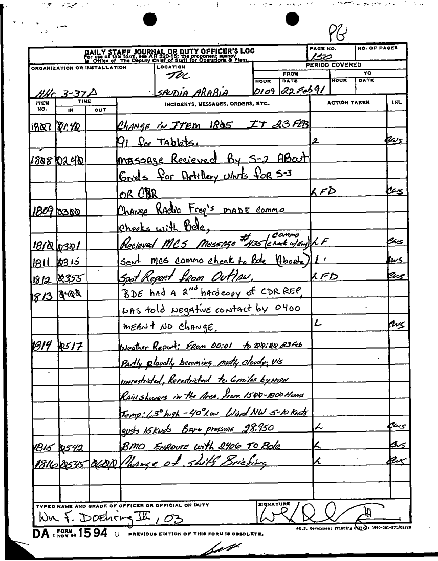 Document 58 f:/Week-27/BX001030/FEBRUARY 1991 DAY 16-23/daily staff journal:0719961126387