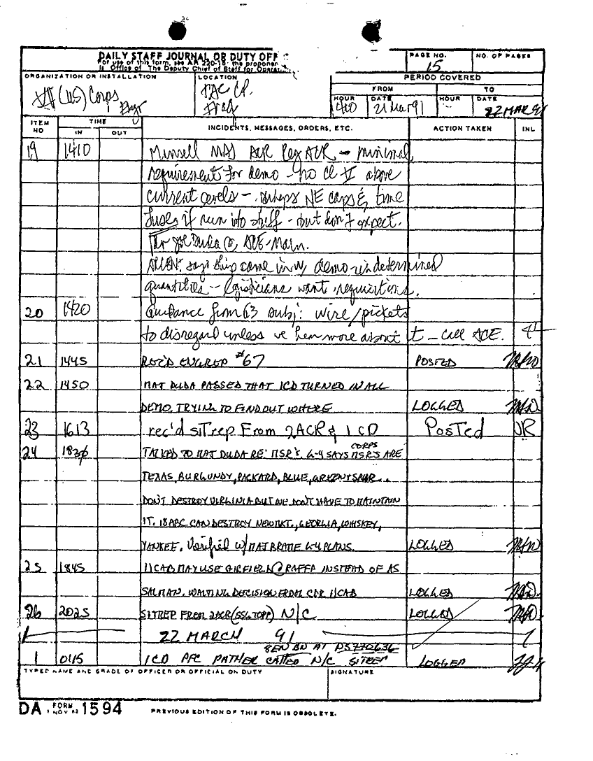 Document 59 f:/Week-25/BX000252/DAILY STAFF JOURNAL 16 MAR TO 13 APRIL 1991 SITREPS/daily staff journal:07199610194645