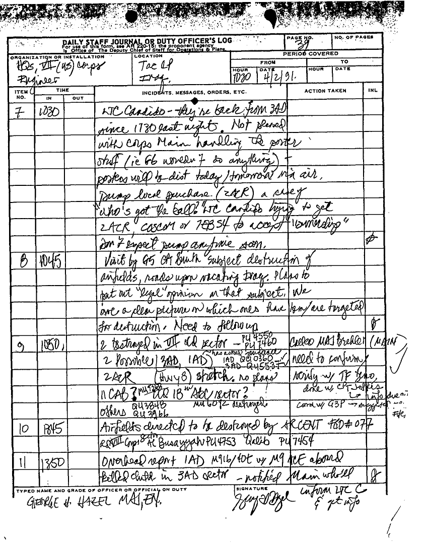 Document 59 f:/Week-25/BX000252/DAILY STAFF JOURNAL 16 MAR TO 13 APRIL 1991 SITREPS/daily staff journal:07199610194645