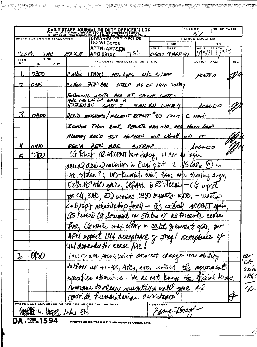 Document 59 f:/Week-25/BX000252/DAILY STAFF JOURNAL 16 MAR TO 13 APRIL 1991 SITREPS/daily staff journal:07199610194645