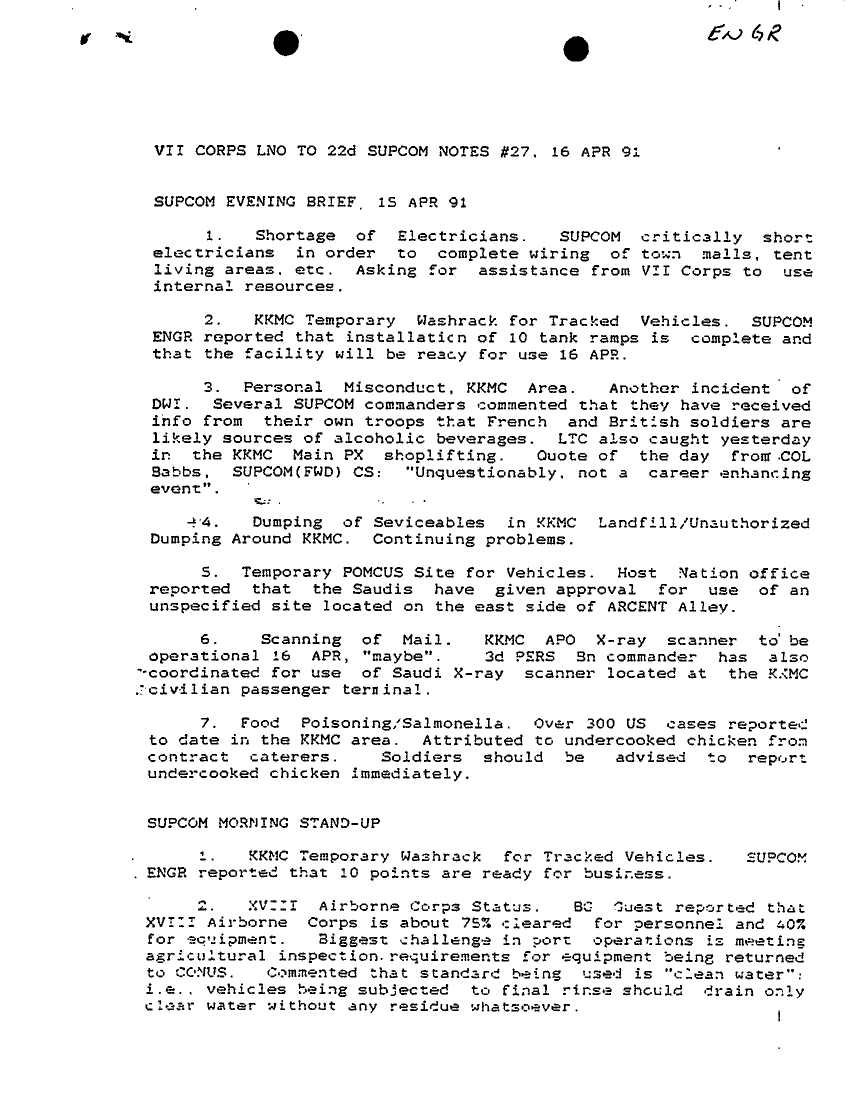 Document 3 f:/Week-25/BX000251/VII CORPS LNO TO 22ND SUPCOM NOTES/supcom evening brief 15apr91:07199610202274
